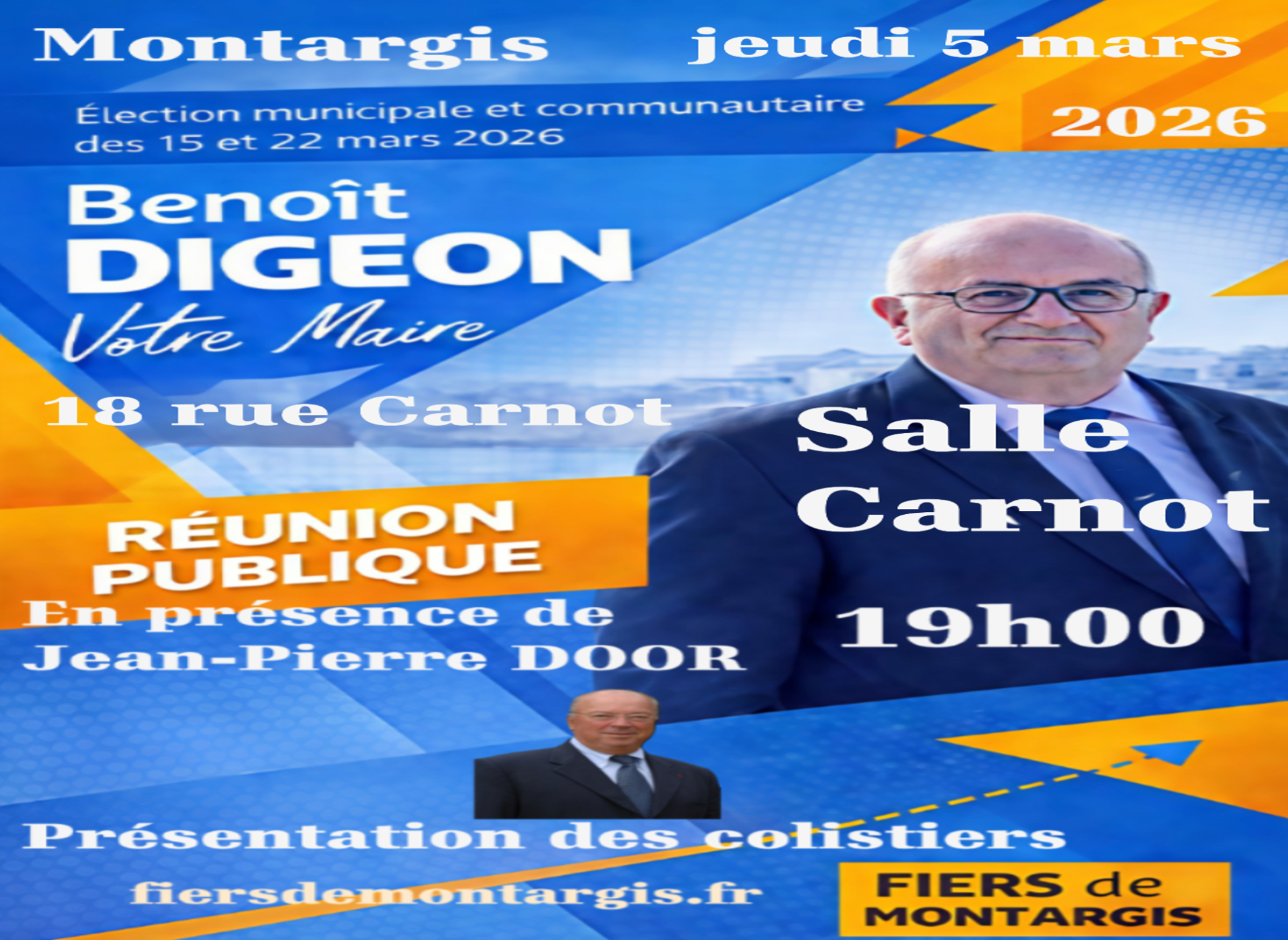Nous vous attendons nombreux le mardi 05 mars 2026 à 19h00 la Salle Carnot, au 18 Rue Carnot pour notre 2ème Réunion Publique d'Information. C'est l'occasion de nous rencontrer pour échanger sur les points majeurs de préoccupations de votre quartier en matière de sécurité, emplois, logements et tous les autres sujets du vivre ensemble harmonieux, qui vous tiennent le plus à coeur. A très bientôt.